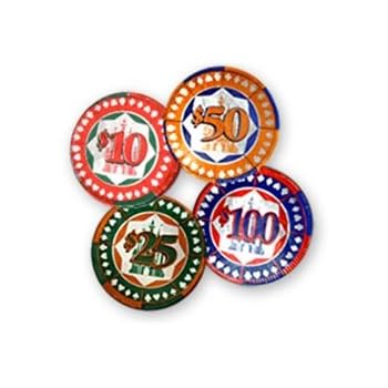 Casino anyone? These realistic chocolate "chips" will sweeten up your game in no time!Comes in an assortment of $10, $25, $50, and $100, and each one is wrapped beautifully detailed foil or paper?Approx. 1.25" in diameter, 80 coins per pound.