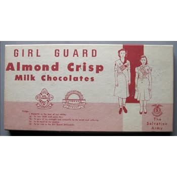 A vintage box, includes cover and box as pictured. The chocolates were eaten long ago. The box is very clean and well preserved. It measures 8.25 X 4.25". Delightful for anyone who was in the Girl Guard or a chocolate collector~! Side of box states: Made exclusively for the Girl Guards. On the front is the Girl Guard pledge and The Salvation Army insignia.