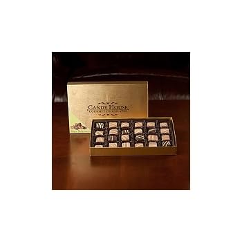 - 24 pc. assortment features: Gourmet milk and dark chocolate; Mint Meltaways Packaged in a gold box with clear lid
