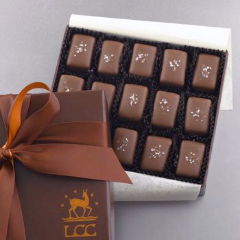 A collection of our rich, slow-cooked caramels drenched in milk chocolate and sprinkled with sea salt. Arrives in a sleek, cocoa-colored gift box tied with a satin ribbon. 15 pieces. 5.2 oz. All-natural. Kosher.