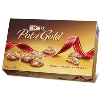 Hershey's Pot Of Gold Chocolates. Best by date: 07/2013. Open up a box of delicious Hershey's Pot of Gold chocolates to share with your family and friends. Each piece is made with Hershey's chocolate so they are sure to please everyone. Hershey's Pot of Gold makes celebrations sweeter! Pecan caramel clusters. 8.7 oz