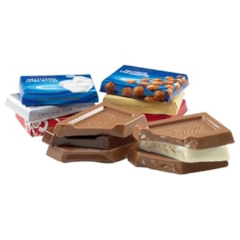 Each case contains approximately 730 pieces and is a mix of six flavors: milk, bittersweet, milk with hazelnut, white and milk Cresta (crunchy nut brittle), and Lindor milk chocolate.