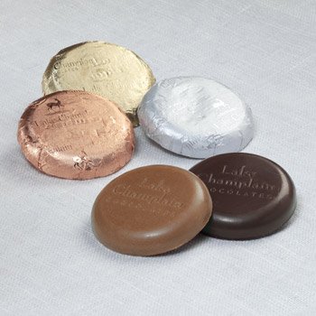 Chocolate Favors. Assorted Bulk Milk and Dark Chocolate Coins - create your own unique favors. Dark Chocolate, Milk Chocolate, and Dark Chocolate Peppermint Crunch Chocolate Coins. These exceptional Belgian chocolate coins are perfect for parties, showers, weddings - whenever you want to spoil your guests. Chocolate coins individually wrapped in embossed Italian foil. Approximately 180 pieces.