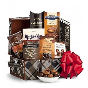 This chocolate chest is filled with goodies that make a perfect treat for everyone who likes something sweet and delicious. It is filled with a variety of tasty treats like Toffee Peanuts, Gourmet Vanilla Caramels, Almond Roca, Moravian Chocolate Cookies, and more. But not just that - the basket includes everything for a complete gourmet party, like Brie Cheese Spread, and Mashuga Nuts. Send it for someone who likes sweet and savory treats - the Chocolate Chest makes a perfect graduation, thank you, or feel better gift.