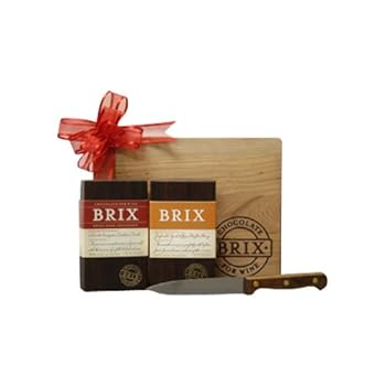 Brix chocolate is specially formulated to complement wine. Brix 2 piece gift set includes a fantastic pairing of Brix Dark and Brix Extra Dark chocolate, along with a solid cherry cutting board and matching knife. Perfect for entertaining or gifting.