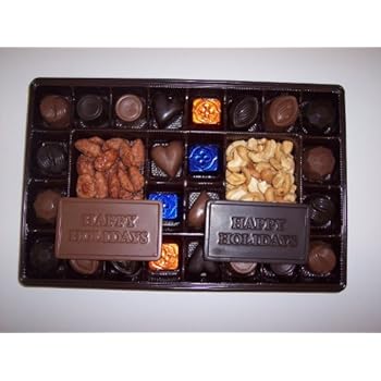 - Chocolate bars with "Happy Holiday" on them, Toffee Almonds, and Cashew peieces