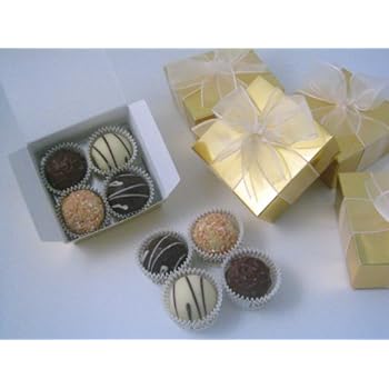 The perfect wedding or party favor, ideal for any special event or any gift giving occasion...enclosed in our classic gold box and tied with a sheer white ribbon, each box contains two assorted truffles.