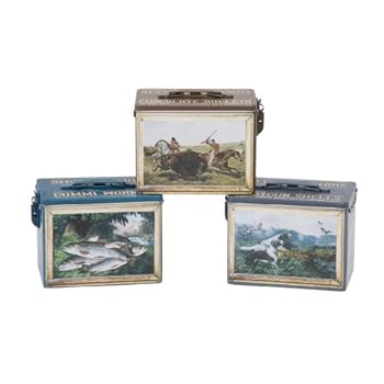 Outdoorsman Package - Contains Chocolate Bullets, Chocolate and Peanut Butter Shotgun Shells, and Gummi Worms. Each Come in Their Own Separate Vitage Collector Tin Box That Is Reusable.